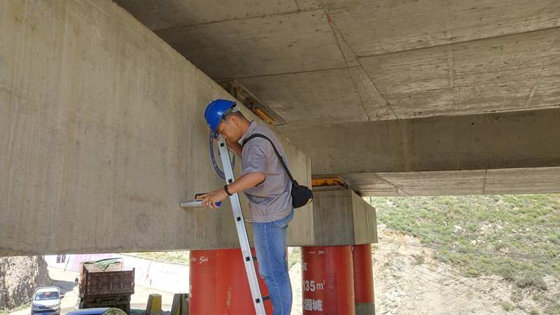 該項目現場檢測工作於(yu) 2018年8月15日開始,8月23日結束,現場檢測工作由王豔森負責,參加人員有李超、劉強等。主要檢測內(nei) 容有路麵彎沉檢測、路麵鑽芯檢測、高程測量,對墩柱、承台、預製梁、蓋梁、現澆梁板的混凝土強度及保護層厚度檢測以及混凝土試塊、鋼筋及連接件、防水材料、壓漿料等原材料檢測。
