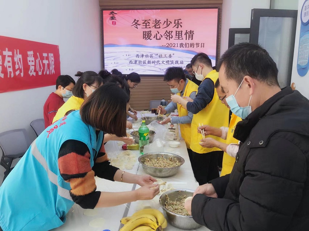 為(wei) 了推動“我為(wei) 群眾(zhong) 辦實事”實踐活動取得實效,讓失獨家庭的群眾(zhong) 過上一個(ge) 溫暖愉快的冬至節,12月21日,甘肅工程谘詢集團誌願者服務隊聯合敦煌路街道西津社區,組織轄區失獨家庭11名居民群眾(zhong) 舉(ju) 辦了“冬至老少樂(le) 暖心鄰裏情”活動,為(wei) 他們(men) 奉上了一道溫暖祥和的餃子“盛宴”。