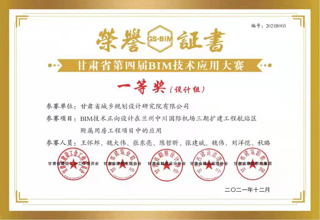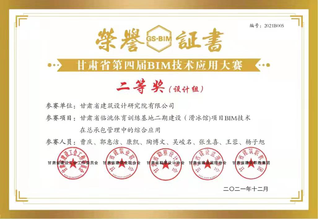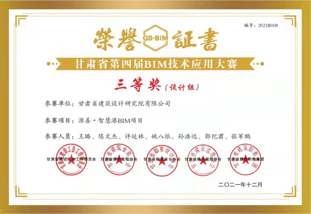 日前,甘肅省建設工會(hui) 工作委員會(hui) 、甘肅省建築業(ye) 聯合會(hui) 、甘肅省勘察設計協會(hui) 、甘肅省建設監理協會(hui) 、甘肅省建築職教集團聯合舉(ju) 辦的“2021年甘肅省職工職業(ye) 技能競賽暨甘肅省第四屆BIM技術應用大賽”評選結果揭曉,甘肅省城鄉(xiang) 規劃設計研究院有限公司“BIM技術正向設計在蘭(lan) 州中川國際機場三期擴建工程航站區附屬用房工程項目中的應用”獲得“BIM技術應用作品征集”比賽設計組一等獎;甘肅省建築設計研究院有限公司“甘肅省臨(lin) 洮體(ti) 育訓練基地二期建設(滑冰館)項目BIM技術在總承包管理中的綜合應用”獲得二等獎,“緣善智慧港BIM項目”獲得三等獎;甘肅省建設監理有限責任公司李燕燕獲得“BIM技術技能比賽”三等獎。