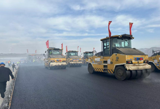 田間的風醇厚柔潤,壓路機上隨風飄搖的旗幟迸發出一陣陣呐喊聲,為(wei) 道路瀝青中麵層鋪築加油助威。